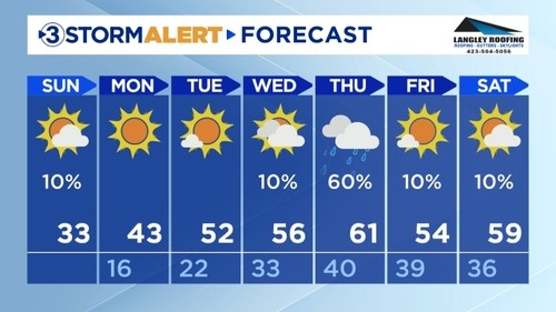 ...COLD WEATHER ADVISORY REMAINS IN EFFECT FROM 5 PM THIS AFTERNOON TO 10 AM EST MONDAY... WHAT...Very cold wind chills as low as zero to 5 above zero expected at times. WHERE...Portions of southwest North Carolina, east Tennessee, and southwest Virginia. WHEN...From 5 PM this afternoon to 10 AM EST Monday. IMPACTS...The cold wind chills could result in hypothermia if precautions are not taken. PRECAUTIONARY/PREPAREDNESS ACTIONS... Use caution while traveling outside. Wear appropriate clothing, a hat, and gloves. Keep pets indoors as much as possible. Make frequent checks on older family, friends, and neighbors. Ensure portable heaters are used correctly. Do not use generators or grills inside.